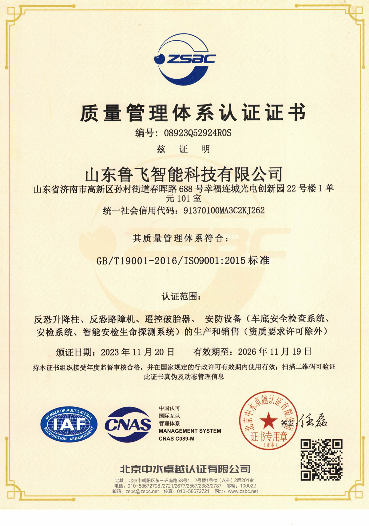 魯飛智能科技有限公司是集“設(shè)計(jì)、研發(fā)、生產(chǎn)、銷售”為一體的高新技術(shù)企業(yè)。專業(yè)從事反恐防暴升降路樁、防暴路障、破胎器、車底檢測(cè)系統(tǒng)、微震生命探測(cè)儀、安檢門(mén)、安檢機(jī)、拒馬、電動(dòng)伸縮門(mén)、無(wú)人機(jī)反制系統(tǒng)、無(wú)人機(jī)反制槍、車載無(wú)人機(jī)反制、便攜式無(wú)人機(jī)反制槍等系列產(chǎn)品的生產(chǎn)與銷售。